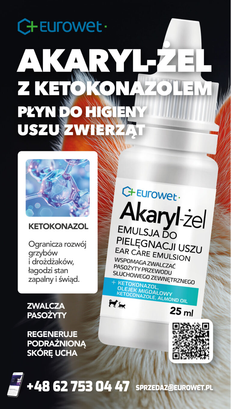 AKARYL-ŻEL – specjalistyczna emulsja z ketokonazolem do pielęgnacji uszu psów i kotówPreparat stworzony z myślą o profesjonalnej pielęgnacji przewodu słuchowego w opiece weterynaryjnej. Łączy ketokonazol