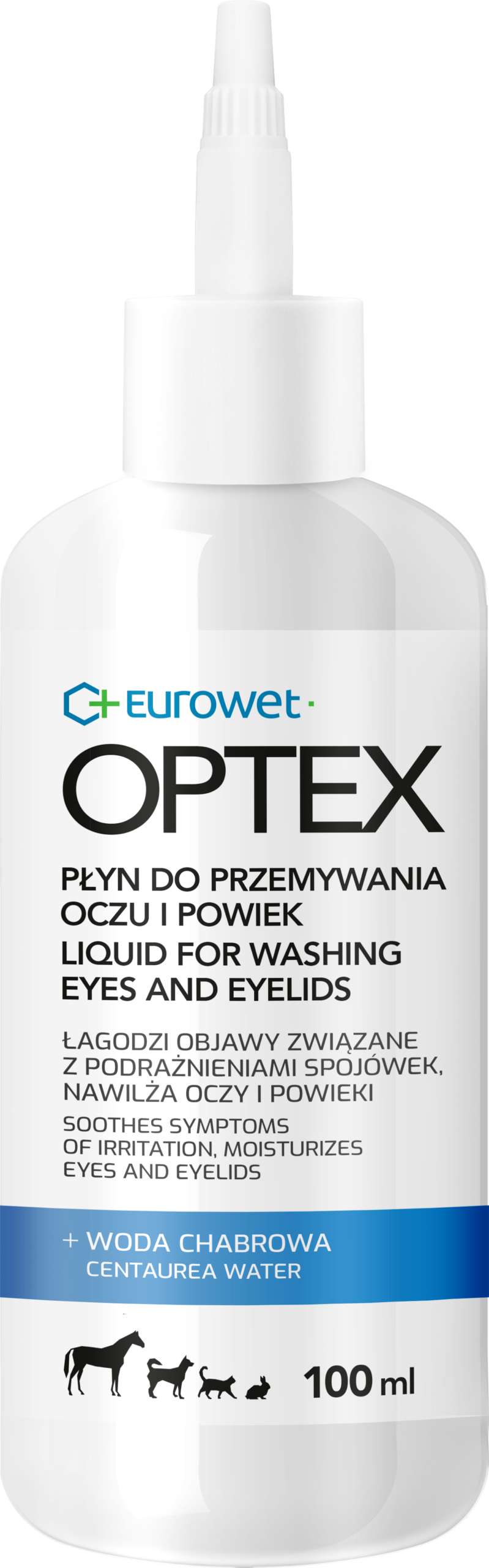 OPTEX jest dermokosmetykiem weterynaryjnym, który łagodzi objawy związane z podrażnieniami spojówek oraz ułatwia naturalne nawilżenie oczu i powiek. Pomaga usunąć zanieczyszczenia z worka spojówkowego.