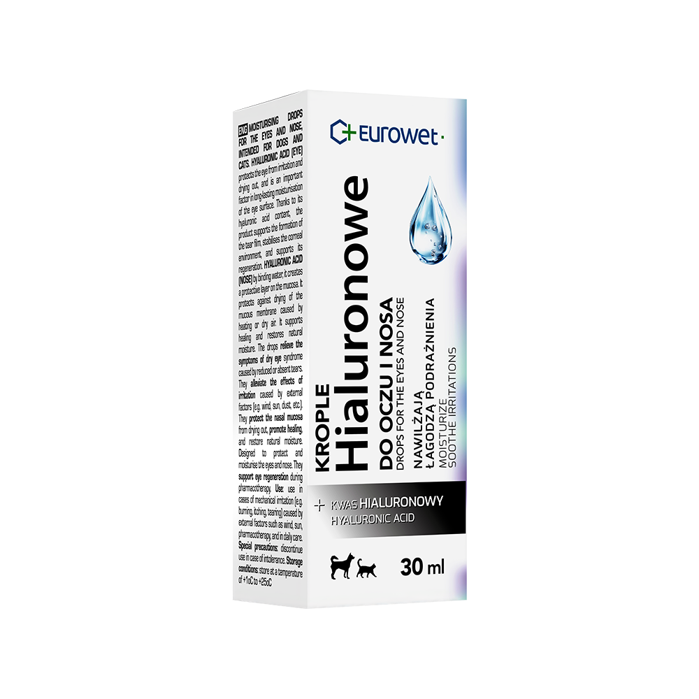 Krople nawilżające do oczu i nosa przeznaczone dla psów i kotów.