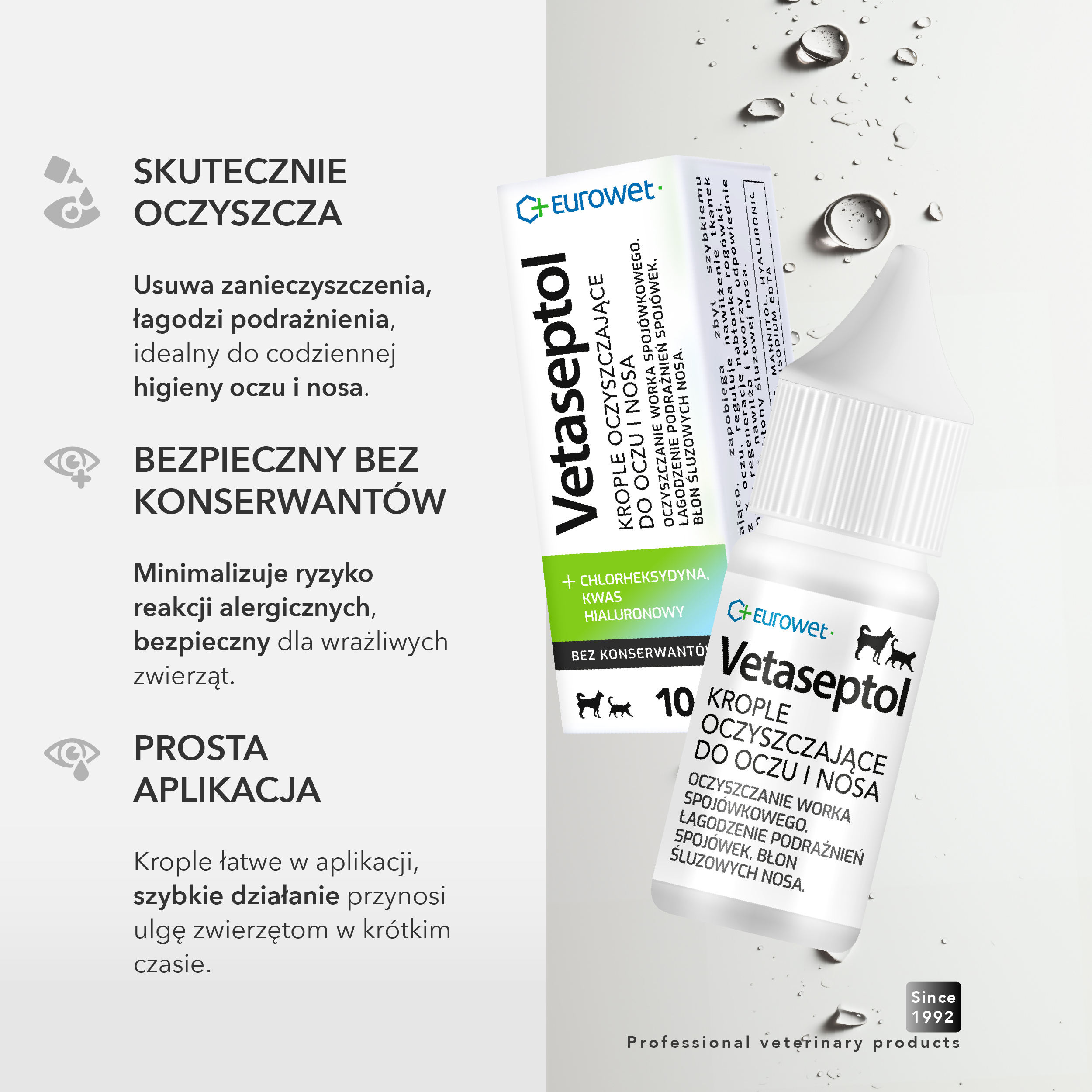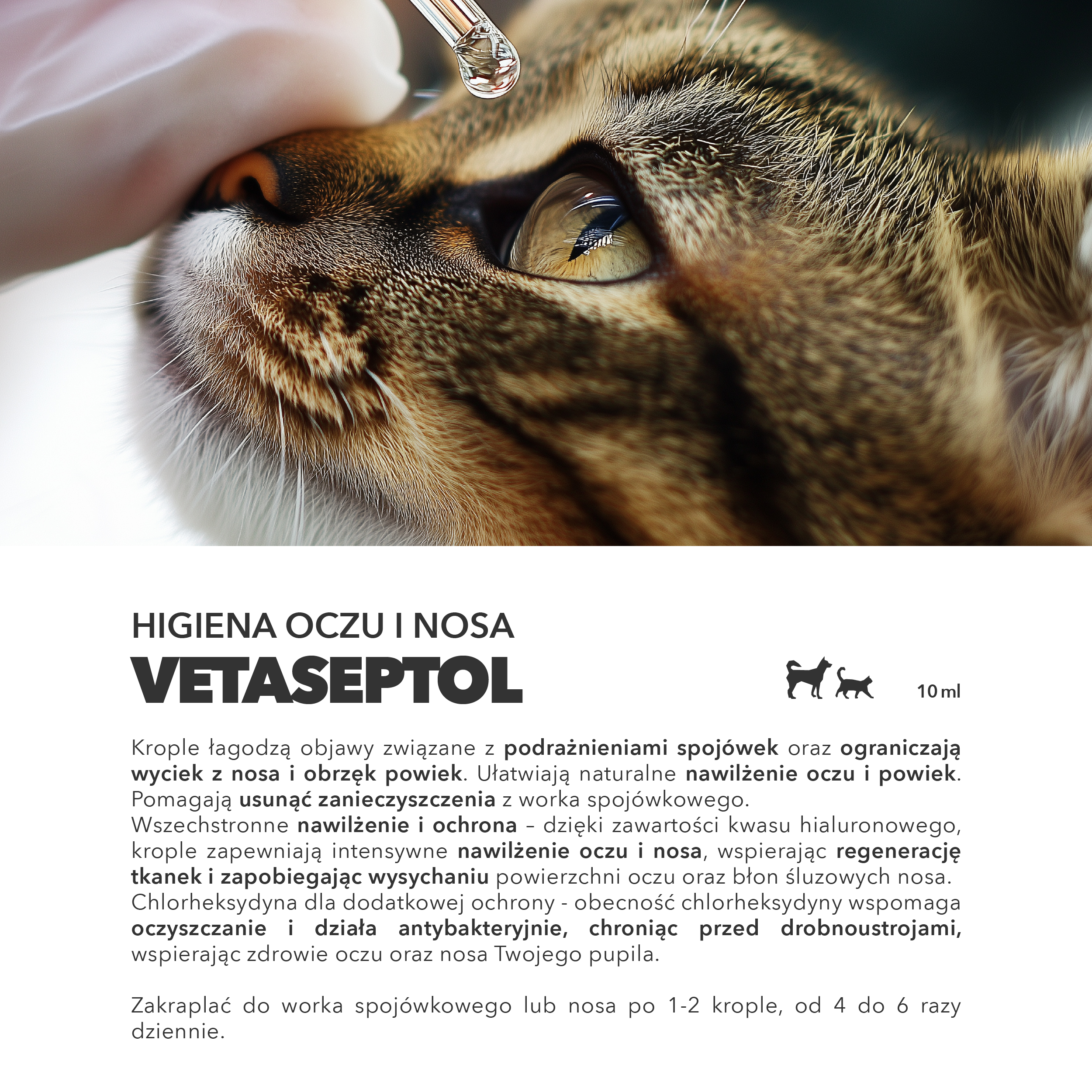 Szukasz bezpiecznego, skutecznego rozwiązania dla zdrowia oczu i nosa Twojego psa lub kota? Oto odpowiedź – VETASEPTOL!